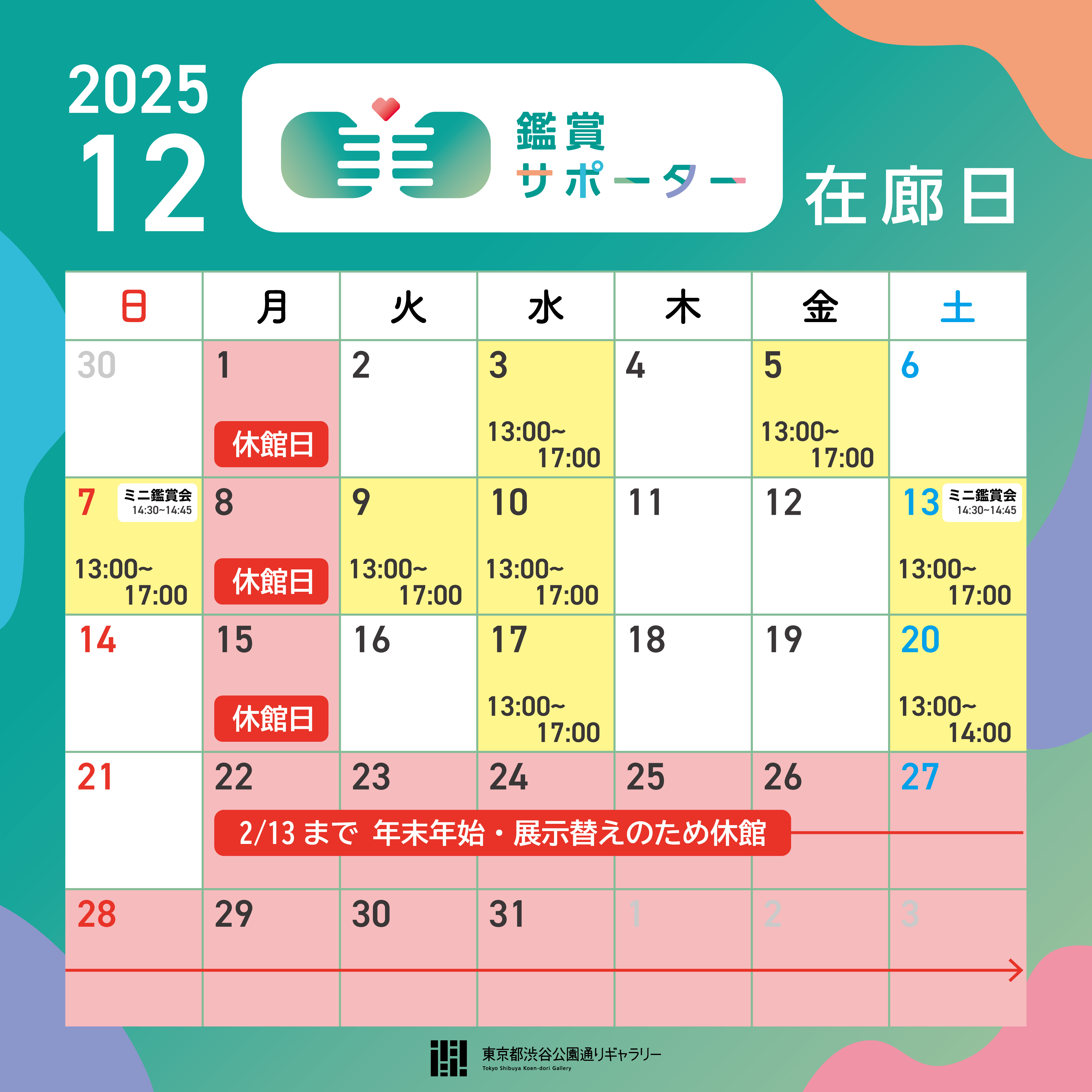 ※鑑賞サポーター在廊予定日は、都合により変更になる場合があります。ご容赦ください。